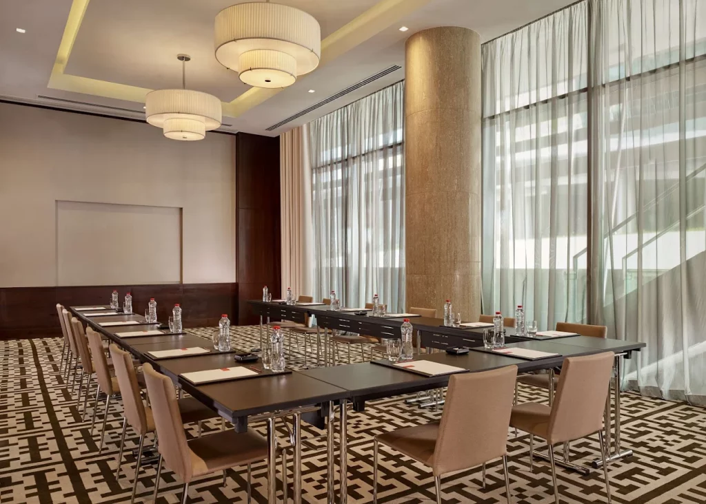 For business and social events, Grand Hyatt Abu Dhabi excels with its extensive facilities. The hotel boasts several thousand square meters of flexible event space, including ballrooms, boardrooms, and terraces.